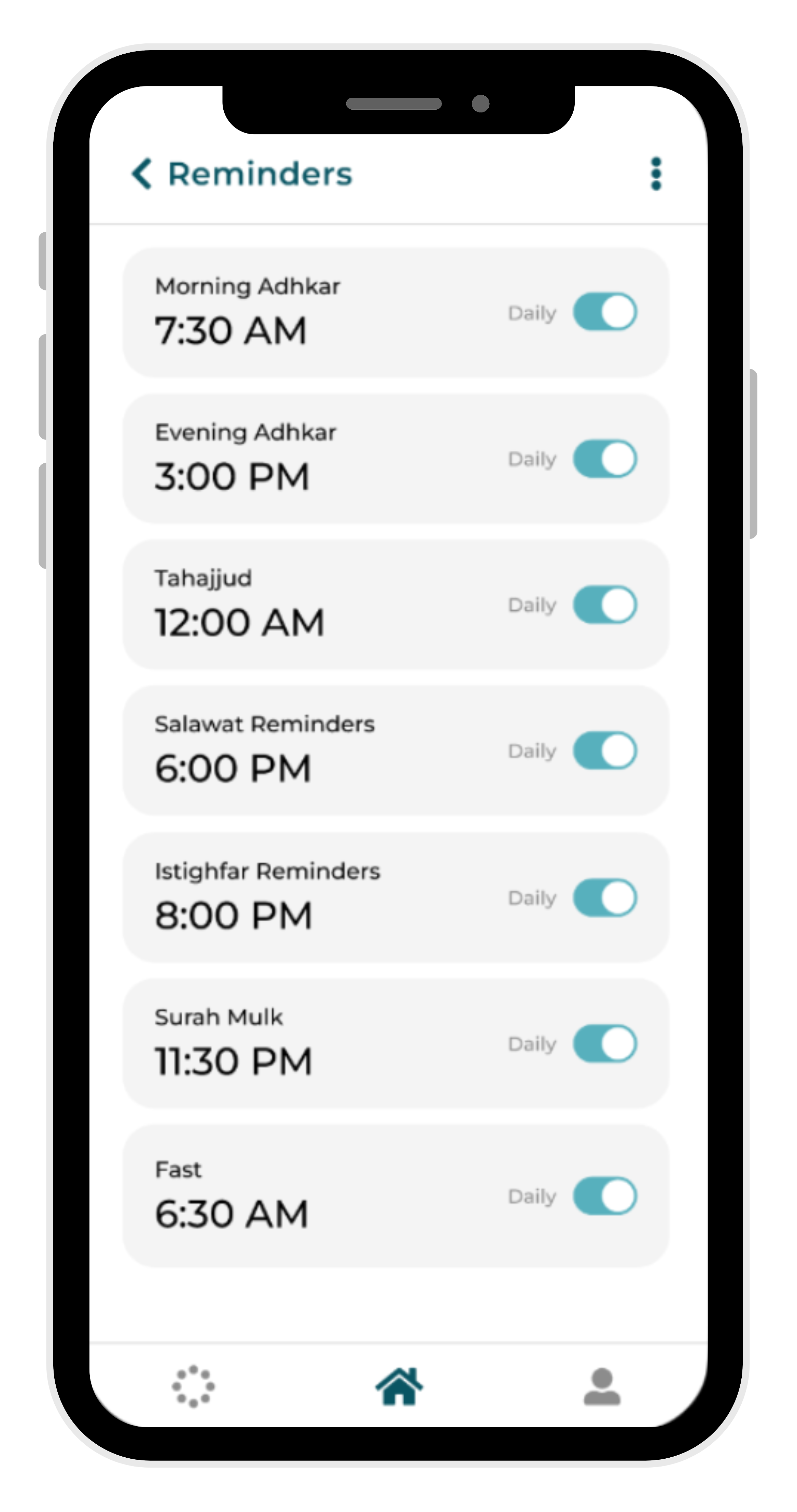 Through context-based reminders, Ihsan ensures you never miss opportunities to draw closer to Allah—whether it’s during the rain, the last hour of Asr on Jummah, or other powerful moments for du’a.